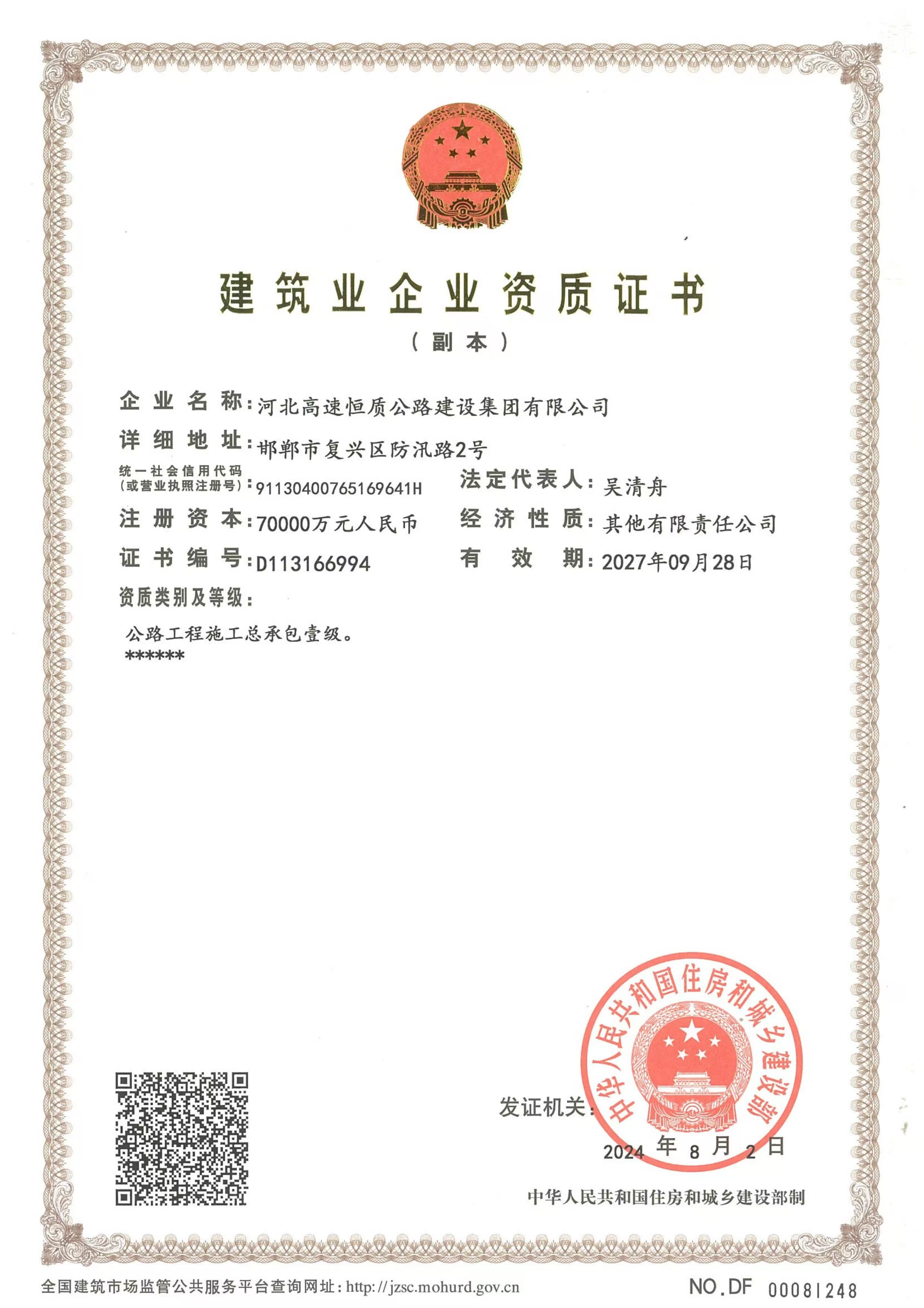 河北高速恒質(zhì)公路建設(shè)集團(tuán)有限公司始建于2004年,前身是邯鄲市恒質(zhì)公路建設(shè)集團(tuán)有限公司。2024年7月成為河北高速公路集團(tuán)有限公司二級子公司,現(xiàn)有職工500余人,下轄18家子公司13個(gè)分公司,參股公司3家 ,注冊資本7億元,是一家集公路工程施工、路用材料研發(fā)生產(chǎn)、試驗(yàn)檢測、瀝青貿(mào)易、公鐵物流于一體的多元化、綜合性單位,國家級高新技術(shù)企業(yè),河北省專精特新中小企業(yè),河北省首家瀝青拌合環(huán)保引領(lǐng)性企業(yè)。公司擁有公路工程總承包壹級、公路交通工程(公路安全設(shè)施)專業(yè)承包壹級、機(jī)電工程施工總承包貳級、電力工程施工總承包貳級、市政公用工程施工總承包貳級、建筑工...
